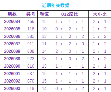 开奖回顾:福彩3D开奖号为518,和值为14,其中奖号012路比为0:1:2,大小比2:1。